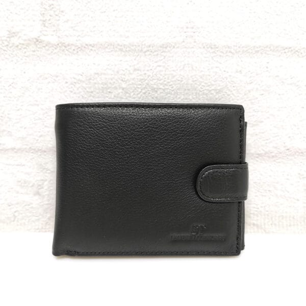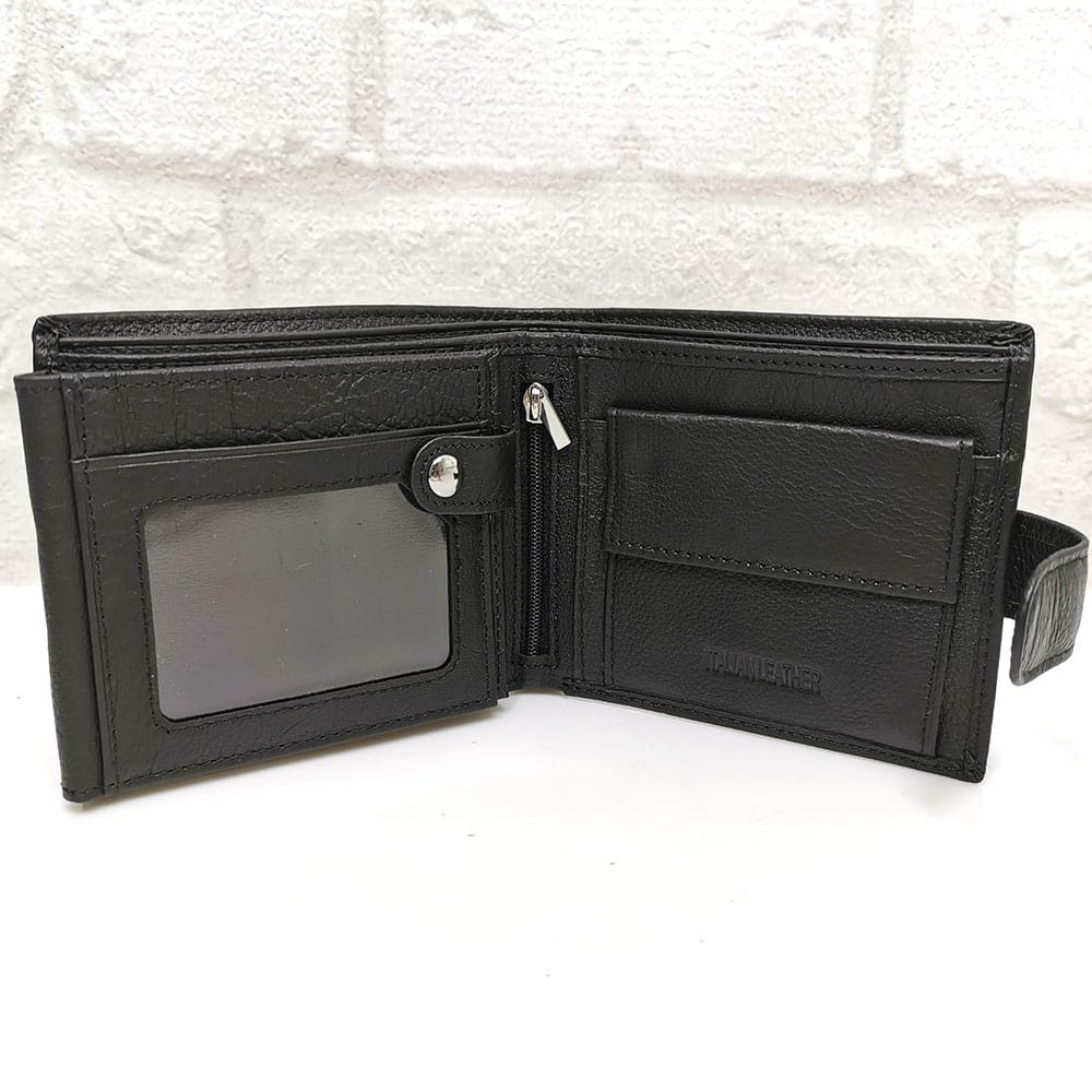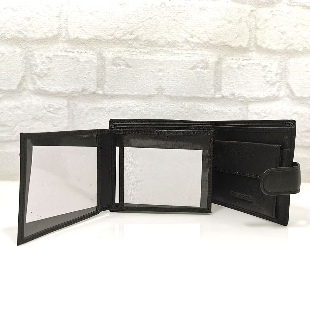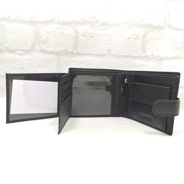 Три отделения за банкноти, от които едното с цип, 10 джобчета с различни размери за визитки или карти, като 4 са прозрачни, едно малко джобче с цип, монетник с копче тик-так.