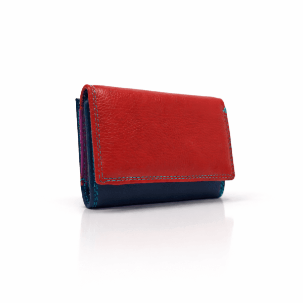 Портмоне бордо с тъмно синьо от естествена кожа -напа. Компактно, удобно и практично, с достатъчно отделения за карти, банкноти и монети-идеален ежедневен аксесоар.