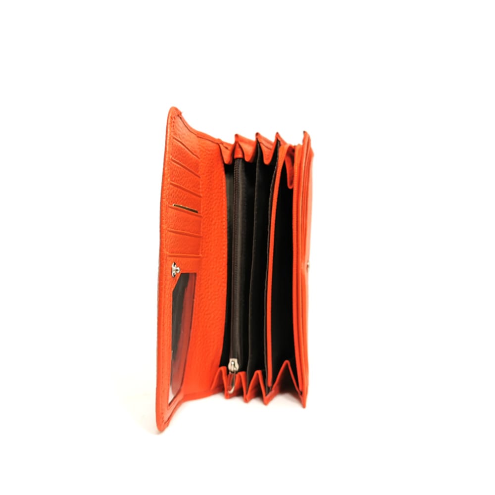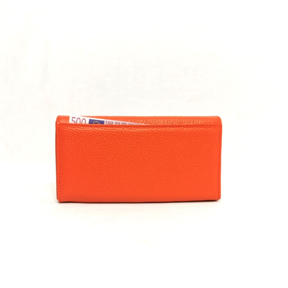 Отвън на гърба джоб, отвътре-шест големи прегради за банкноти, като двете са с цип и стават за монети, 12 отделения за визитки, като едното е прозрачно