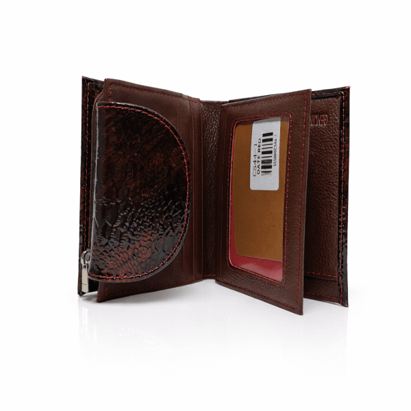 Отвътре 2 прегради за банкноти, 15 джоба за документи и карти с различна големина, като един е прозрачен, външен монетник с цип и в него има средна преграда.