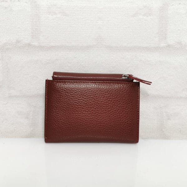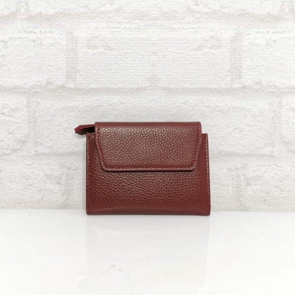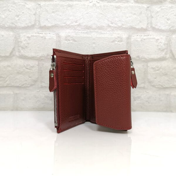 Едно отделение за банкноти, 9 джобчета за карти или визитки, като едно от тях е прозрачно. Два джоба с метални ципове-един вътре и един отвън.