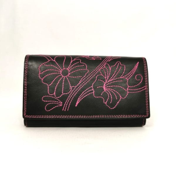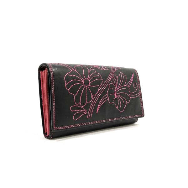 Пет прегради за банкноти, вътрешен голям монетник с преграда, в него има малко джобче за един житон, затваря се с капак и копче тик-так, 6 процепа за визитки, защитени от падане с лента, 1 прозрачно джобче, един джоб с цип, още 2 непрозрачни прегради по дължината на портмонето, отвън на гърба преграда без закопчаване.