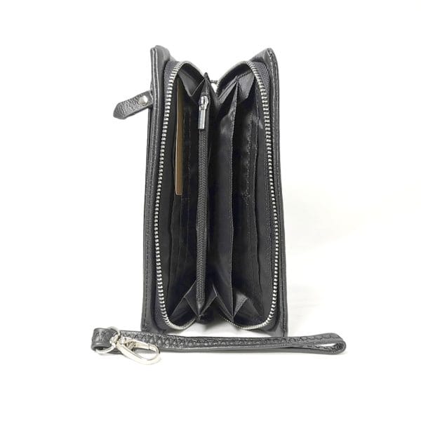 Отвътре 6 големи прегради, като едната е с цип, 8 джобчета за карти.