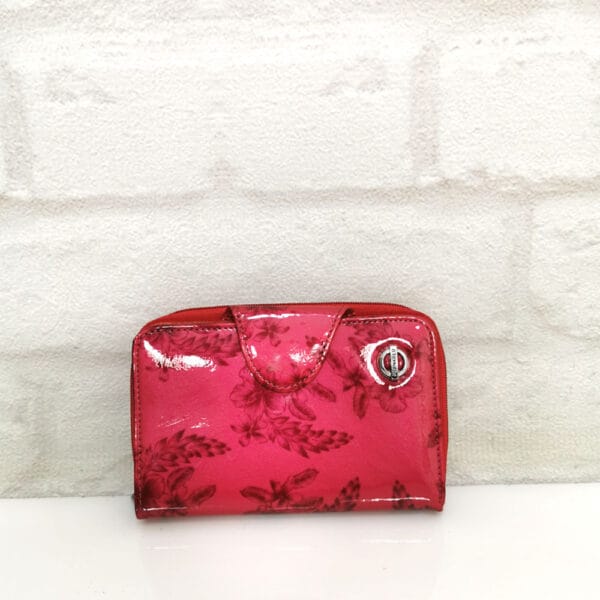 Червен със сиви цветя, метален обков сребрист.