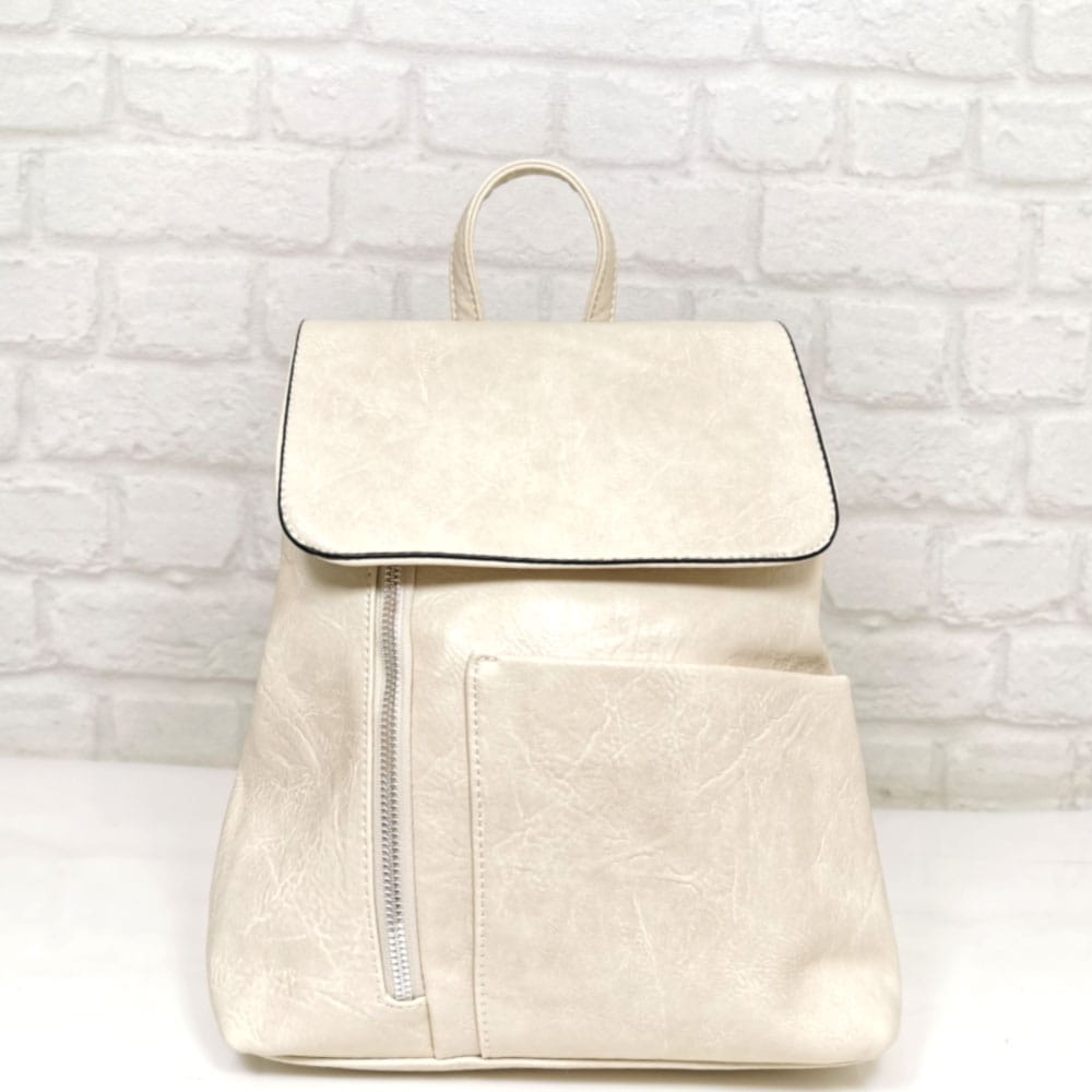 Отвън: отпред вертикален джоб с цип и хоризонтален джоб с магнитно копче, на гърба вертикален джоб с цип.
