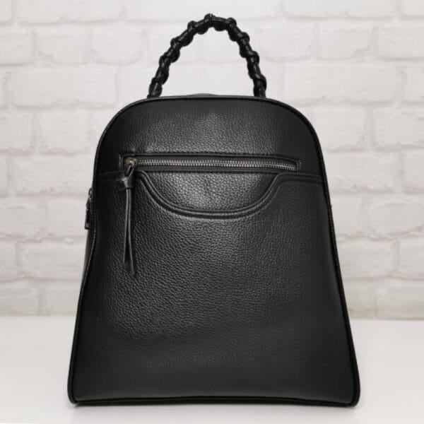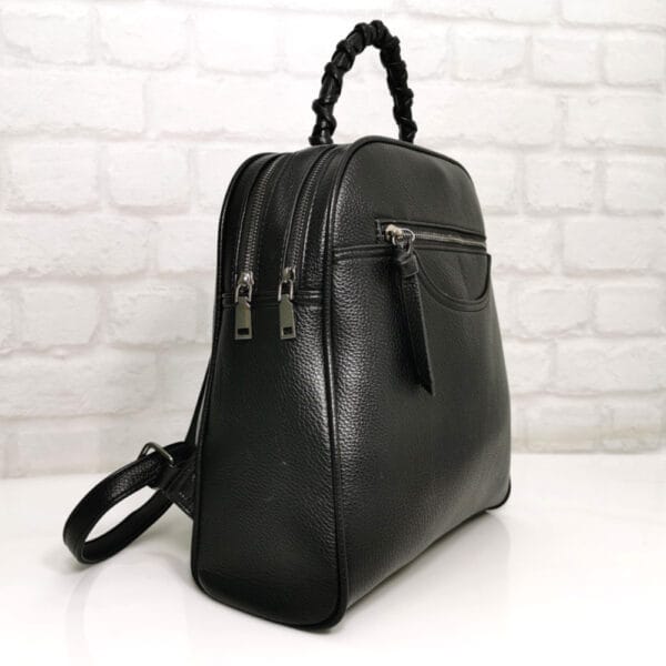 Раницата е с две отделни прегради, като всяка се закопчава с отделен метален цип. Вътре: едно малко джобче с цип и един джоб за телефон.