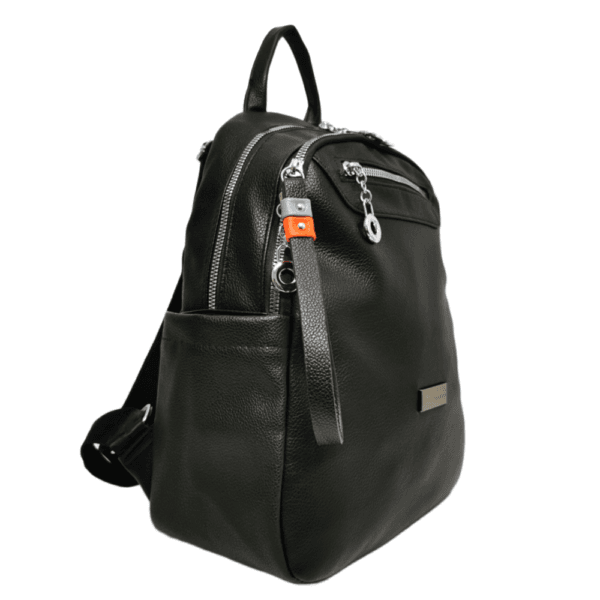 Черен с малки цветни акценти на висулката на ципа, обков метален, сребрист.