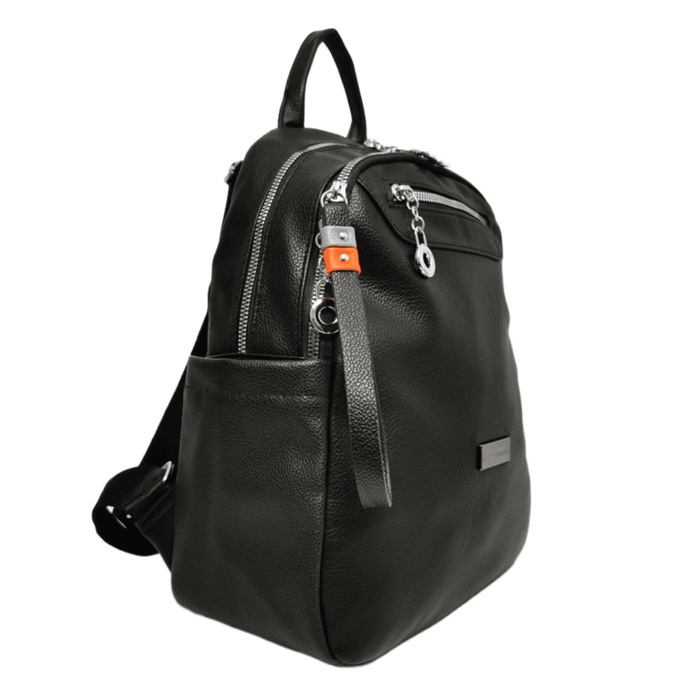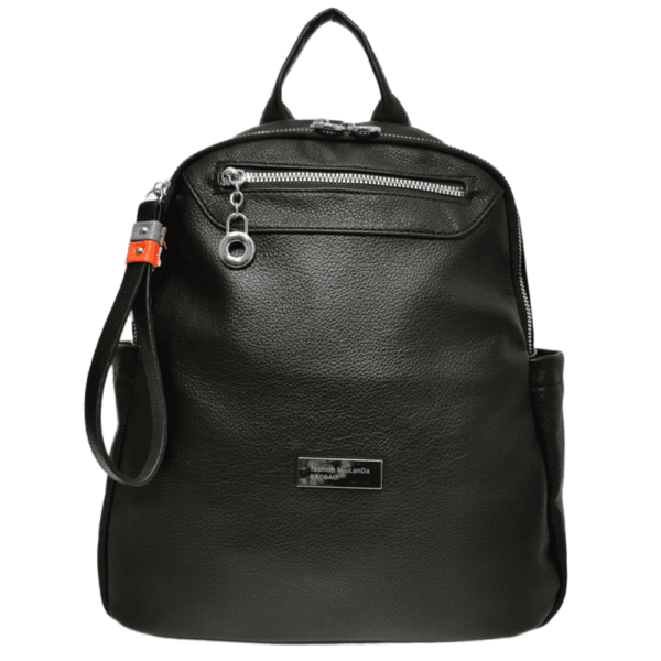 Отвън: отпред малък джоб с метален цип, на гърба джоб с цип, от двете страни по един джоб без закопчаване.