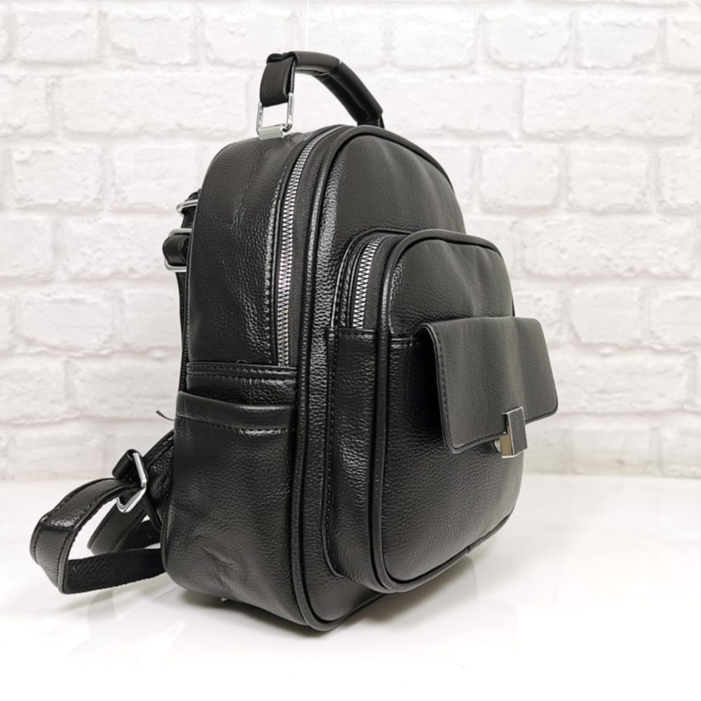 Две регулиращи се дръжки от еко кожа, подплатени с текстил, които като се издърпат в средата и на горе стават на една дръжка и може да носите раницата, като чанта, има и една къса дръжка.
