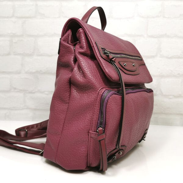 Отвън: отпред голям джоб с цип, на гърба джоб с цип.