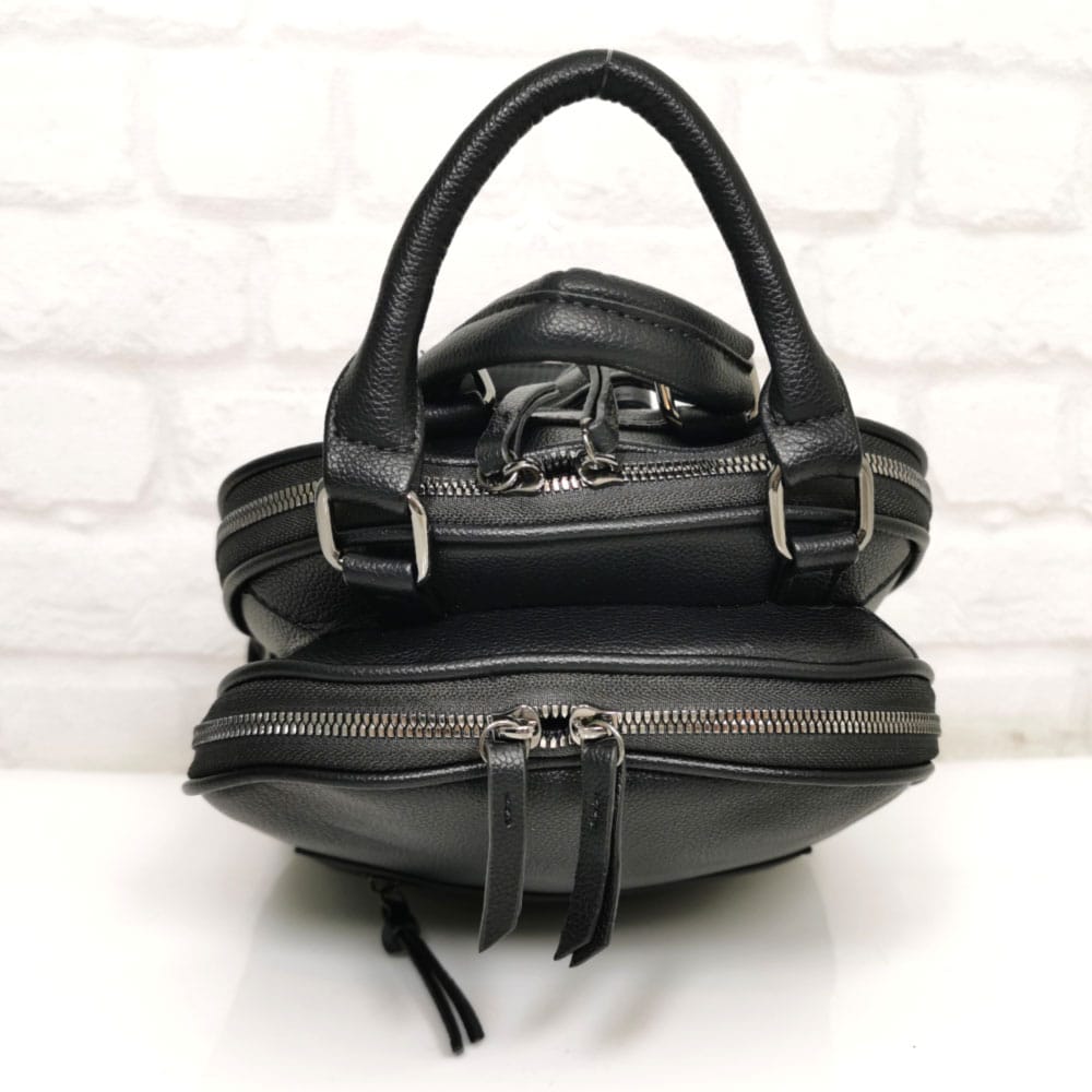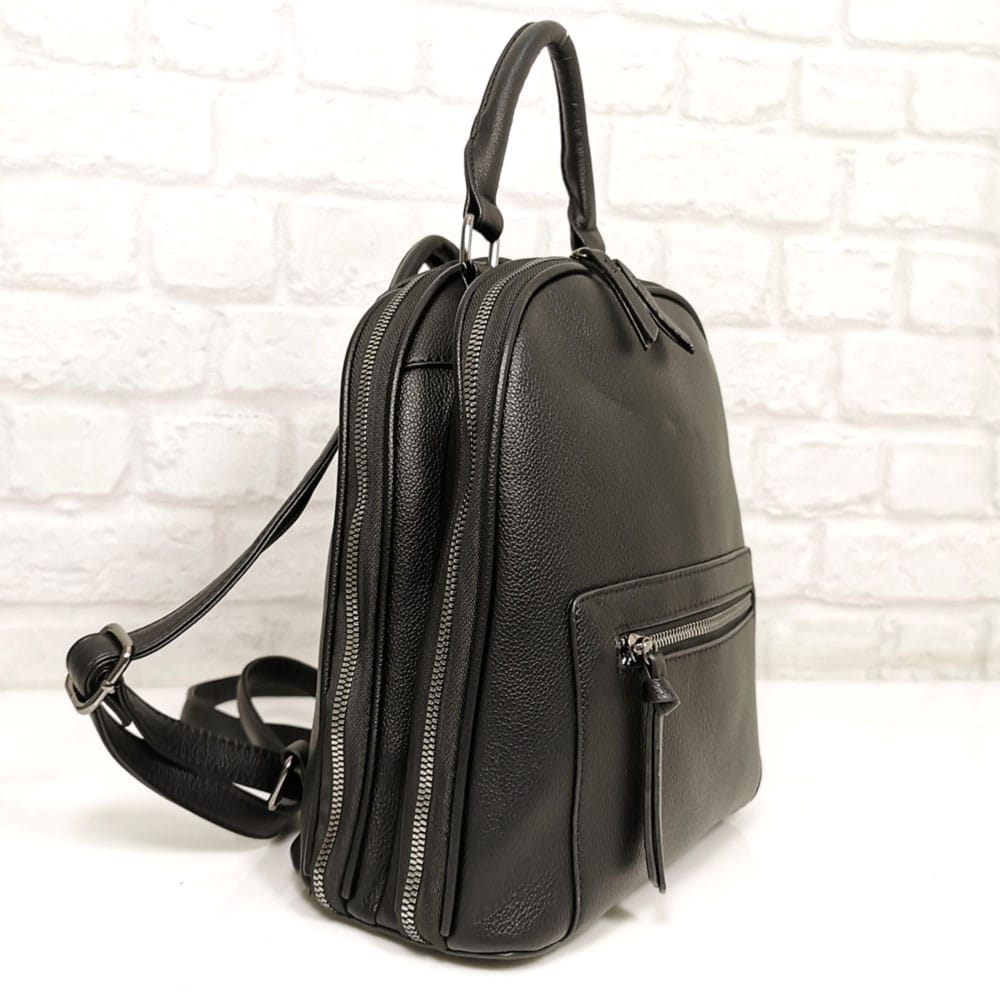 Две регулиращи се дръжки от еко кожа и една къса дръжка. При издърпване на дългите дръжки нагоре, раницата може да се носи и на едно рамо, като чанта.