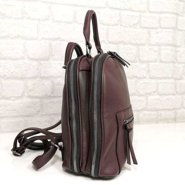 Две регулиращи се дръжки от еко кожа и една къса дръжка. При издърпване на дългите дръжки нагоре, раницата може да се носи и на едно рамо, като чанта.