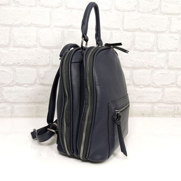 Две регулиращи се дръжки от еко кожа и една къса дръжка. При издърпване на дългите дръжки нагоре, раницата може да се носи и на едно рамо, като чанта.