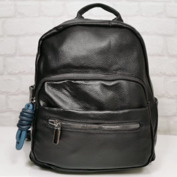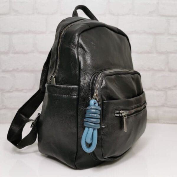 Черен със син аксесоар на ципа, обков сребрист, потъмнен.