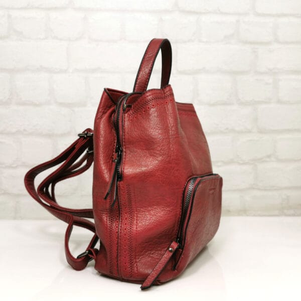 Раницата е с три самостоятелни прегради, като предната се закопчава с метално копче с врътка, средната е най-голяма и се закопчава с метален цип и задната се закопчава с магнитно копче.