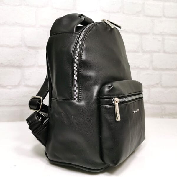Отвън: отпред джоб с метален цип, на гърба джоб с цип.