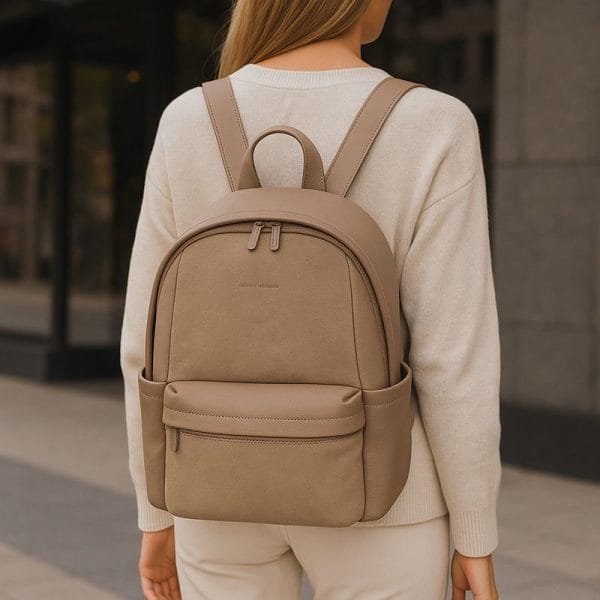 Стилна и практична дамска раница в модерен за сезона бежов цвят, изработена от висококачествена еко кожа и велурена текстура отпред. Има практични джобчета и подходящ размер, както за деловото ежедневие, така и за пътуване. Побира листове с формат А4, има отделение за 13 инчов лаптоп. Оригинален дизайн на марката „David Jones“- Франция. Всички стоки са с преглед и тест! Безплатна доставка за заявки над 80.00лв./40.90€ до офис на транспортна фирма!
