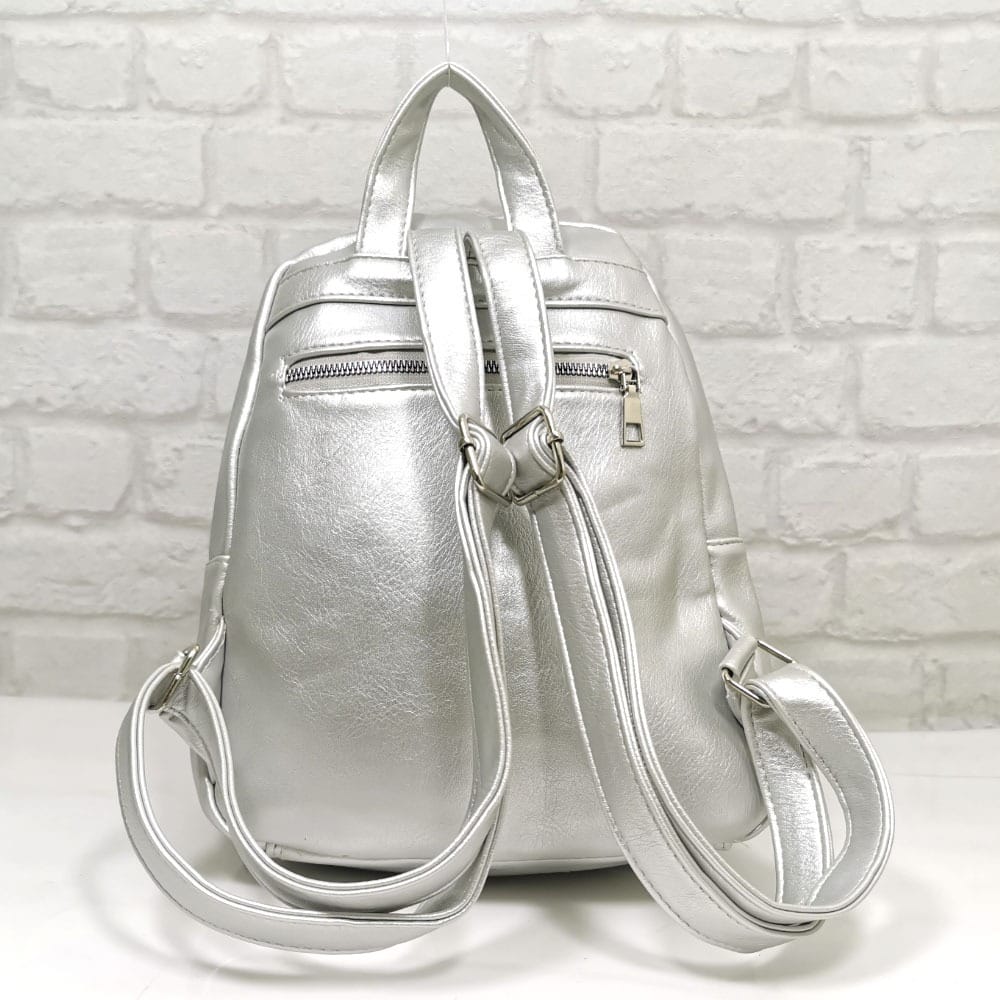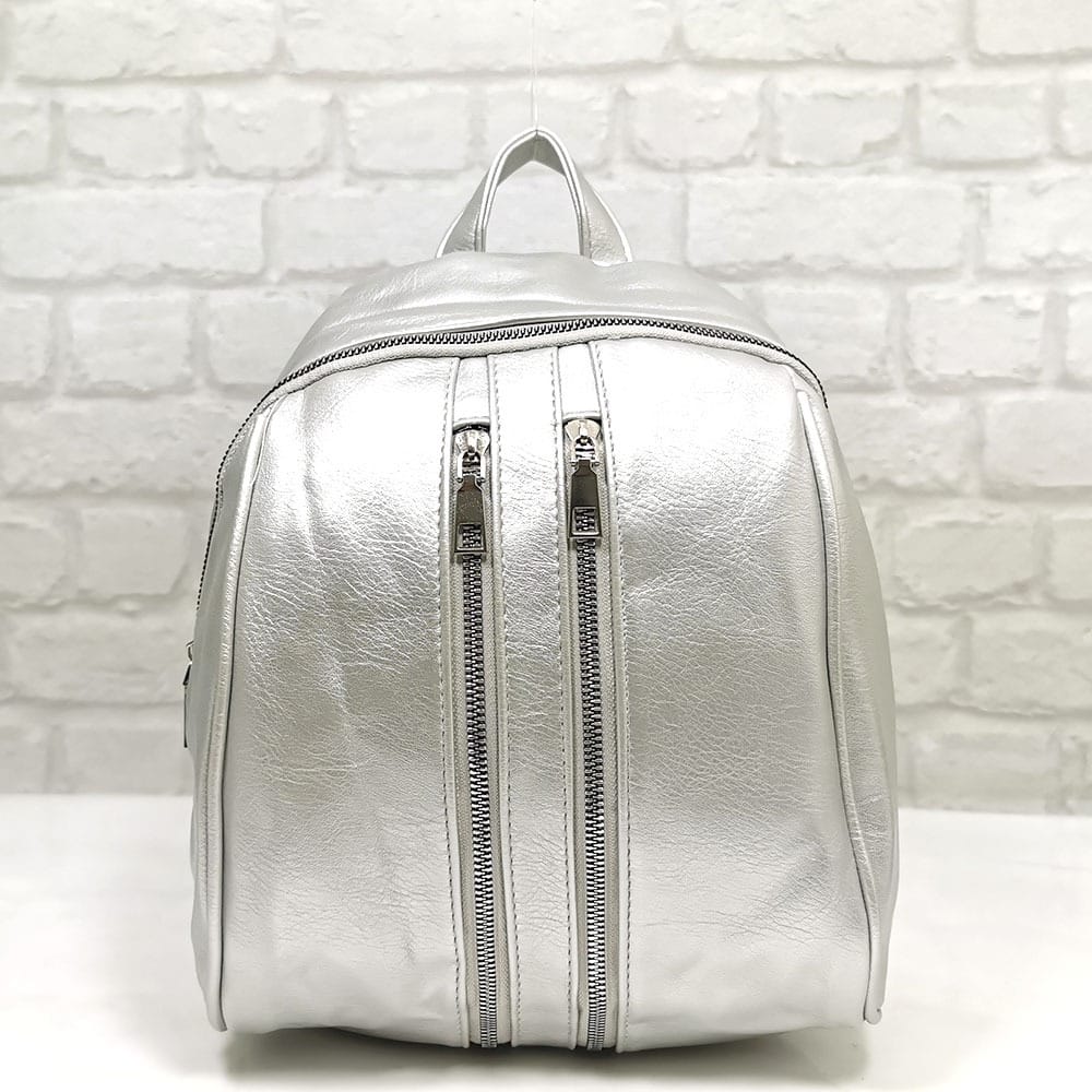 Отвън: отпред два вертикални джоба с метални ципове, отзад на гърба джоб с метален цип