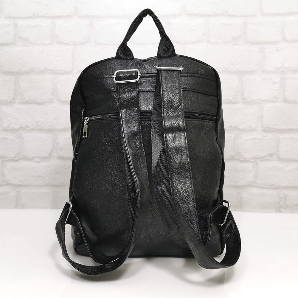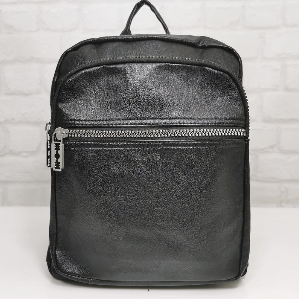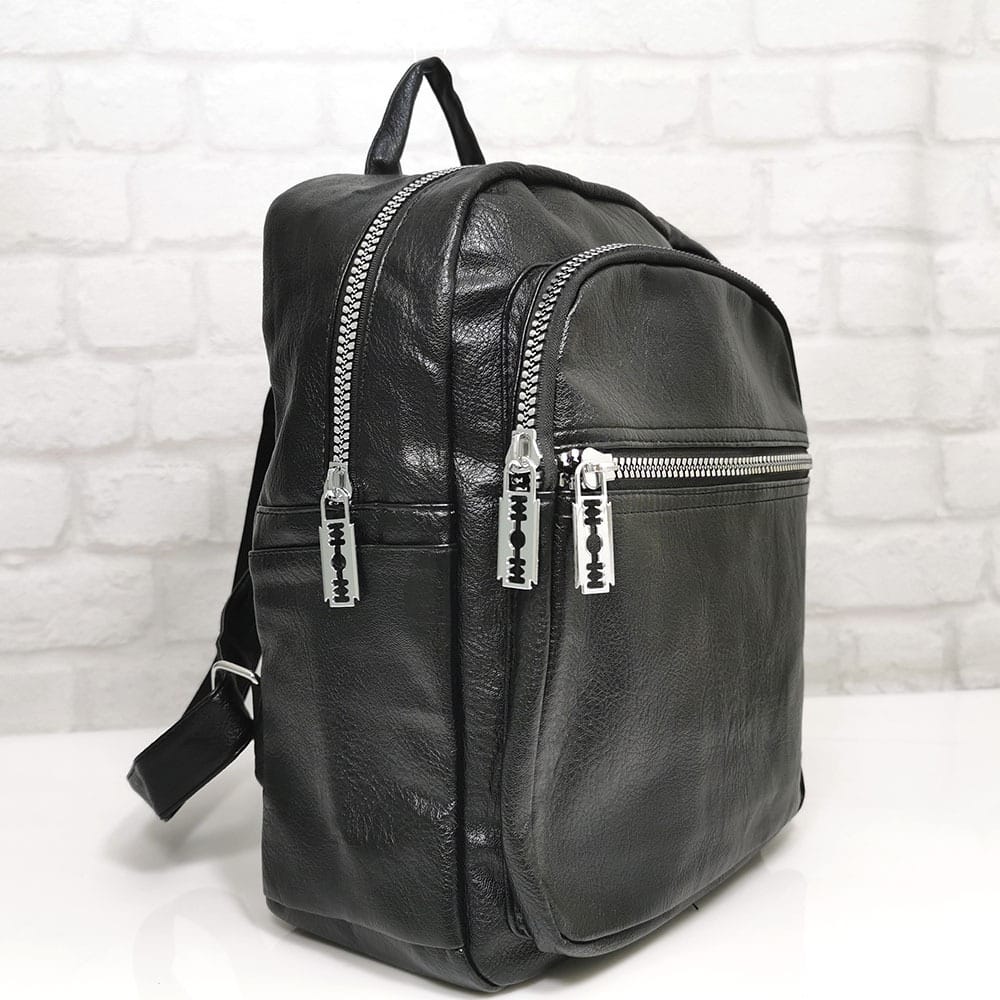 Отвън: отпред два джоба с метални ципове, отстрани по един джоб от двете страни, отзад на гърба джоб с цип