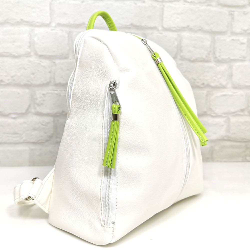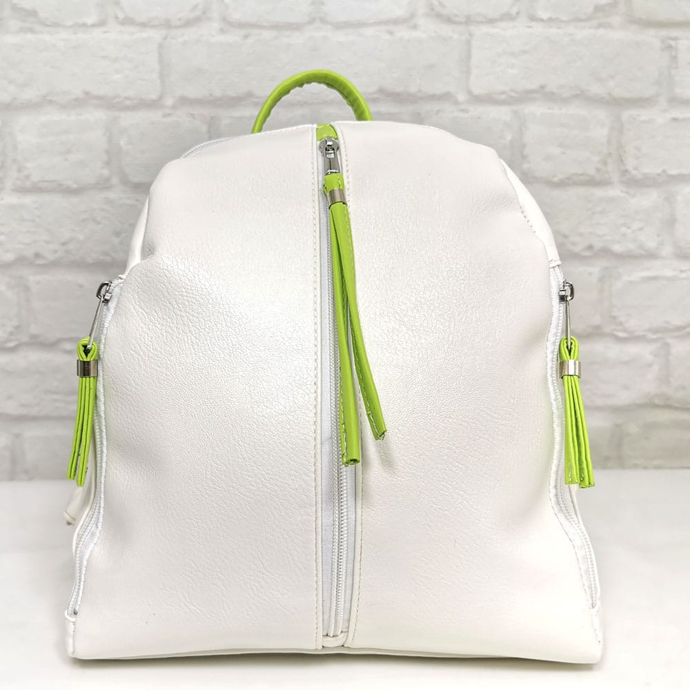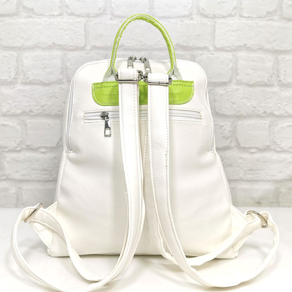 Бял със зелени акценти, обков сребрист.