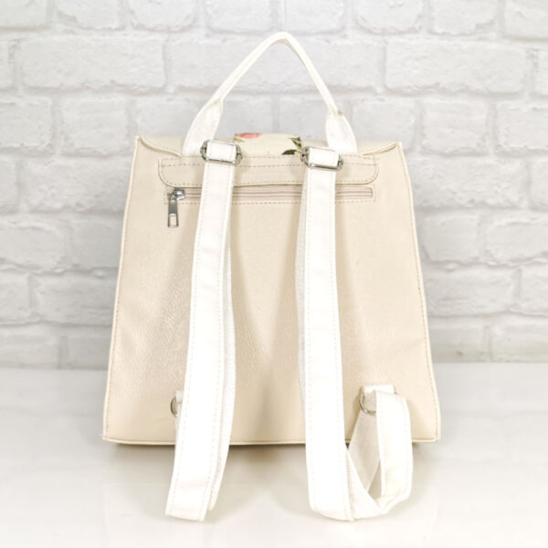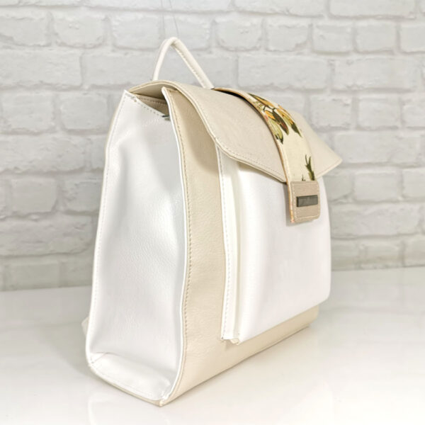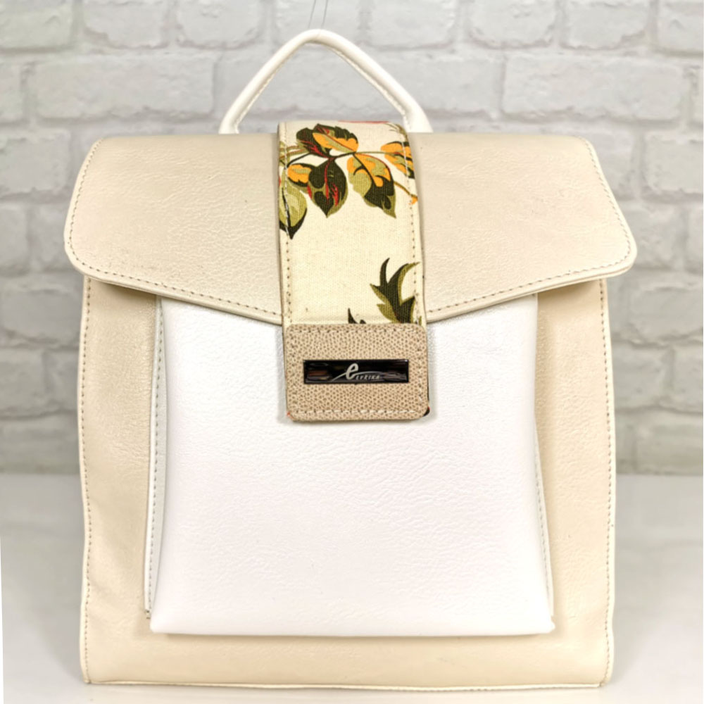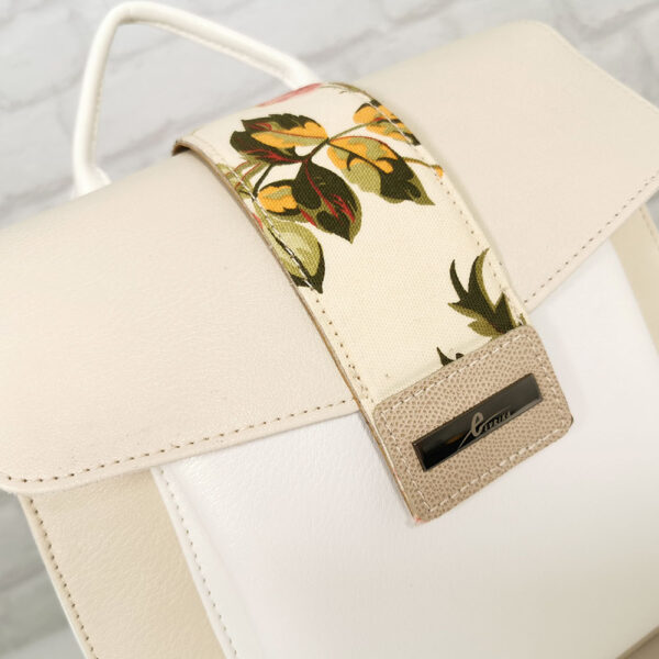 Основен екрю, комбиниран с бяло и цветни акценти, обков сребрист.
