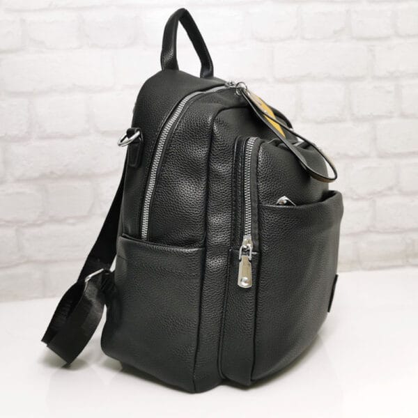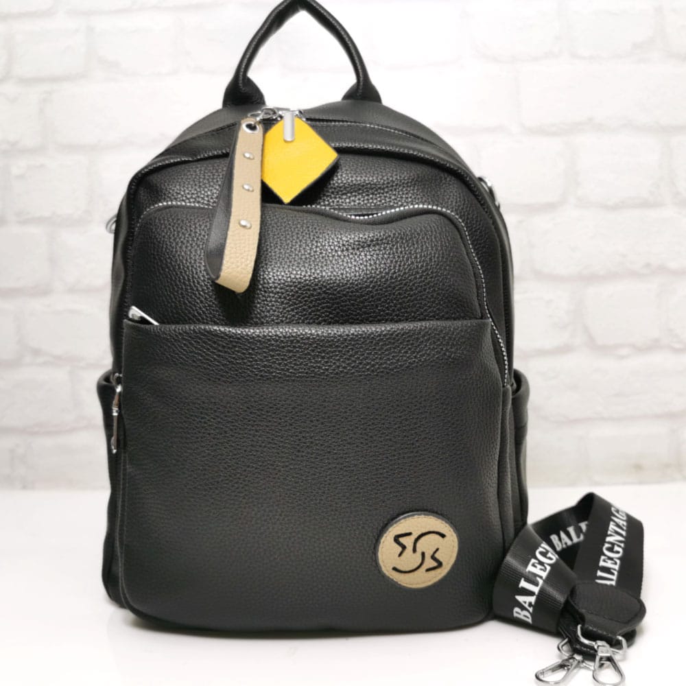Две регулиращи се дръжки, комбинация от еко кожа и текстилна лента, една подвижна текстилна дръжка с дължина 70.0 см., с която можете да носите раницата на едно рамо като чанта; една къса дръжка.