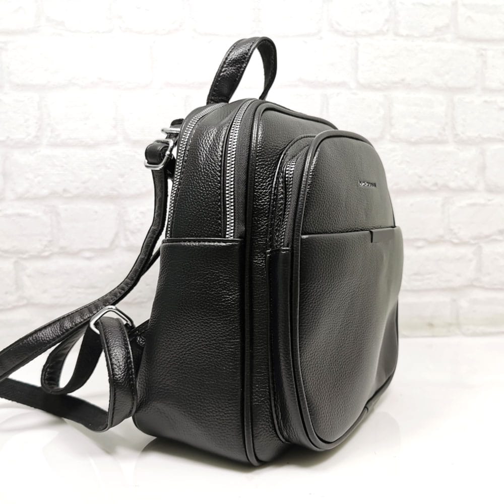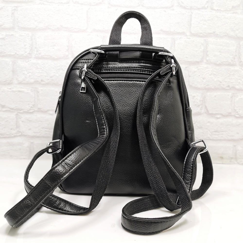 Две регулиращи се дръжки еко кожа, подплатени с текстилна лента, при издърпване на дръжките в средата, можете да носите раницата на едно рамо, като чанта, една къса дръжка.