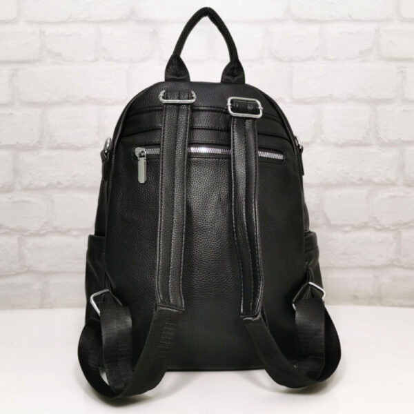 Отвън: отпред един голям джоб с метален цип, на гърба джоб с цип, от двете страни по един джоб без закопчаване.