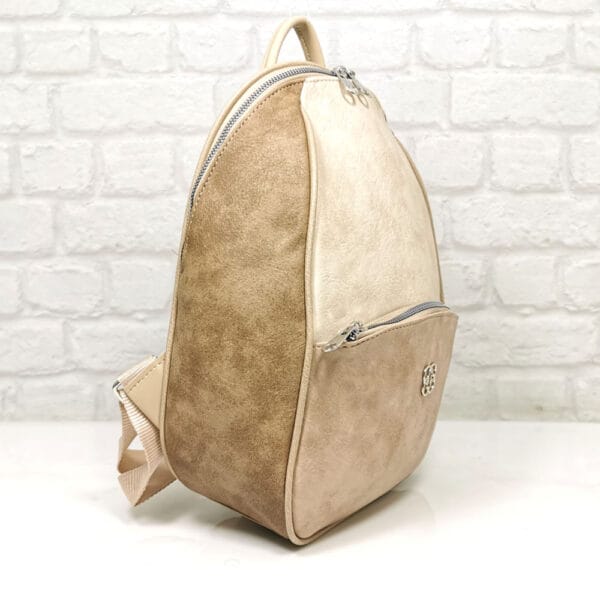 Отвън: отпред джоб с метален цип, на гърба джоб с цип.