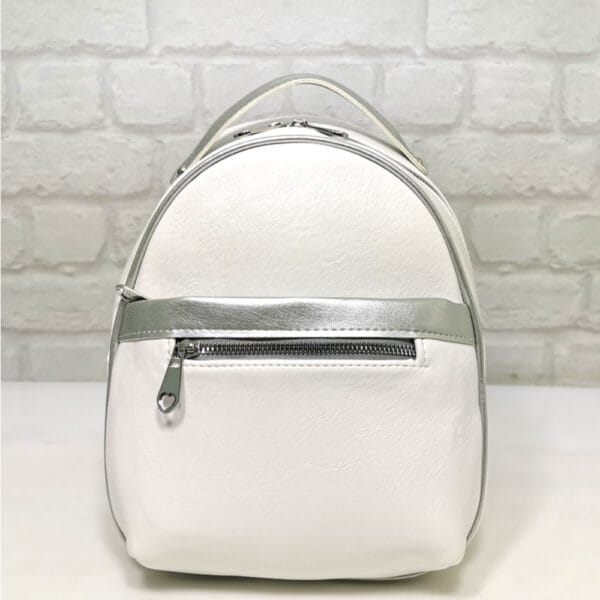 Отвън: отпред два джоба с метални ципове, на гърба джоб с цип.