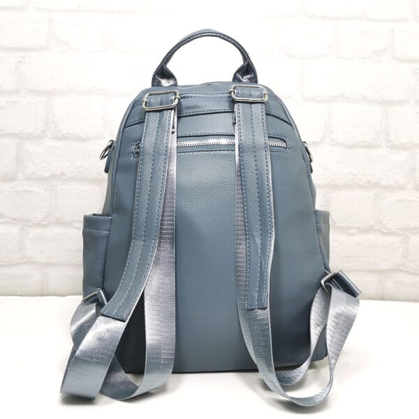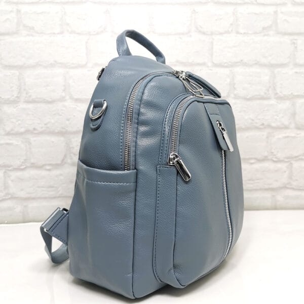 Дамска раница от еко кожа в прекрасен син цвят и с удобни джобчета. Може да се носи и като чанта, защото има допълнителна подвижна дръжка. Всички стоки са с преглед и тест! Безплатна доставка за заявки над 60.00 лева до офис на транспортна фирма!