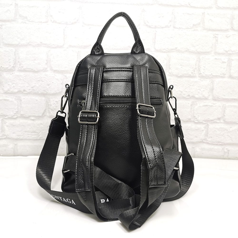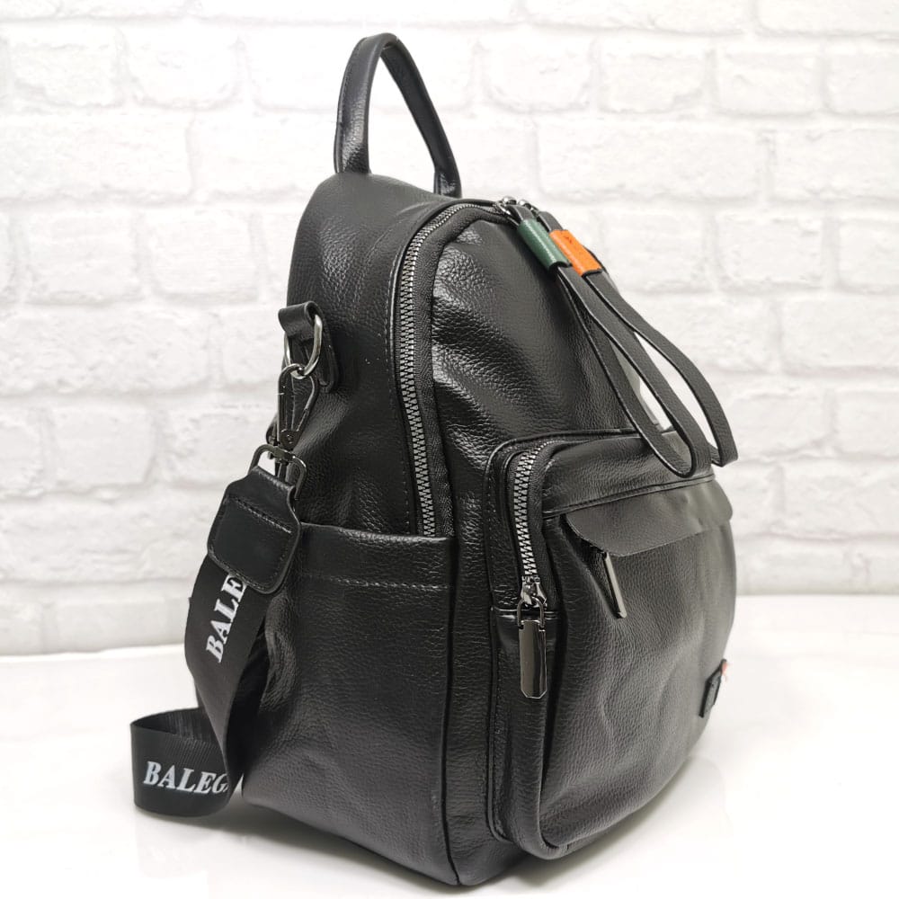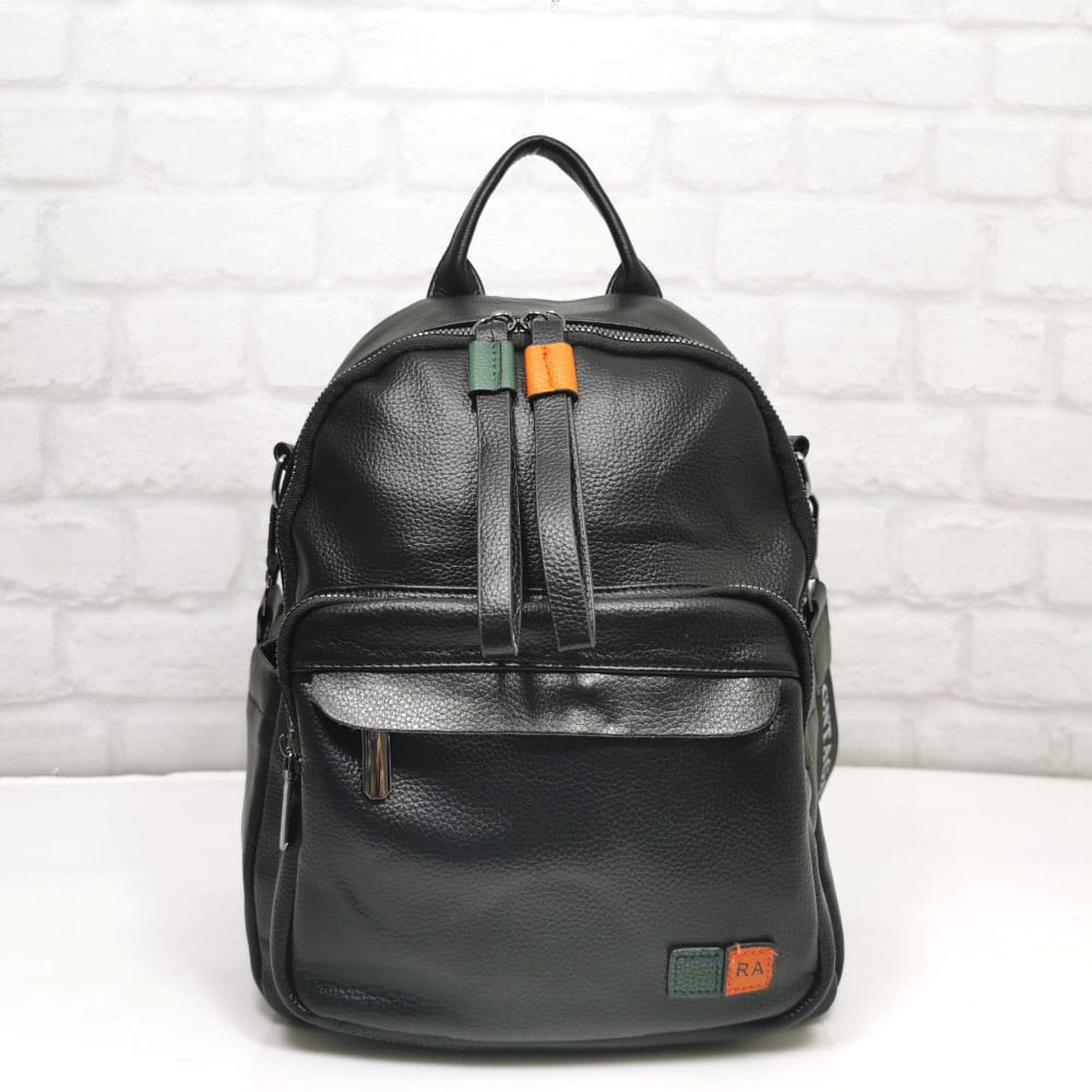 Дамска черна раница Еврика с джобчета от мека приятна на допир еко кожа. Може да се носи и като чанта, защото има допълнителна подвижна дръжка. Всички стоки са с преглед и тест! Безплатна доставка за заявки над 60.00 лева до офис на транспортна фирма!