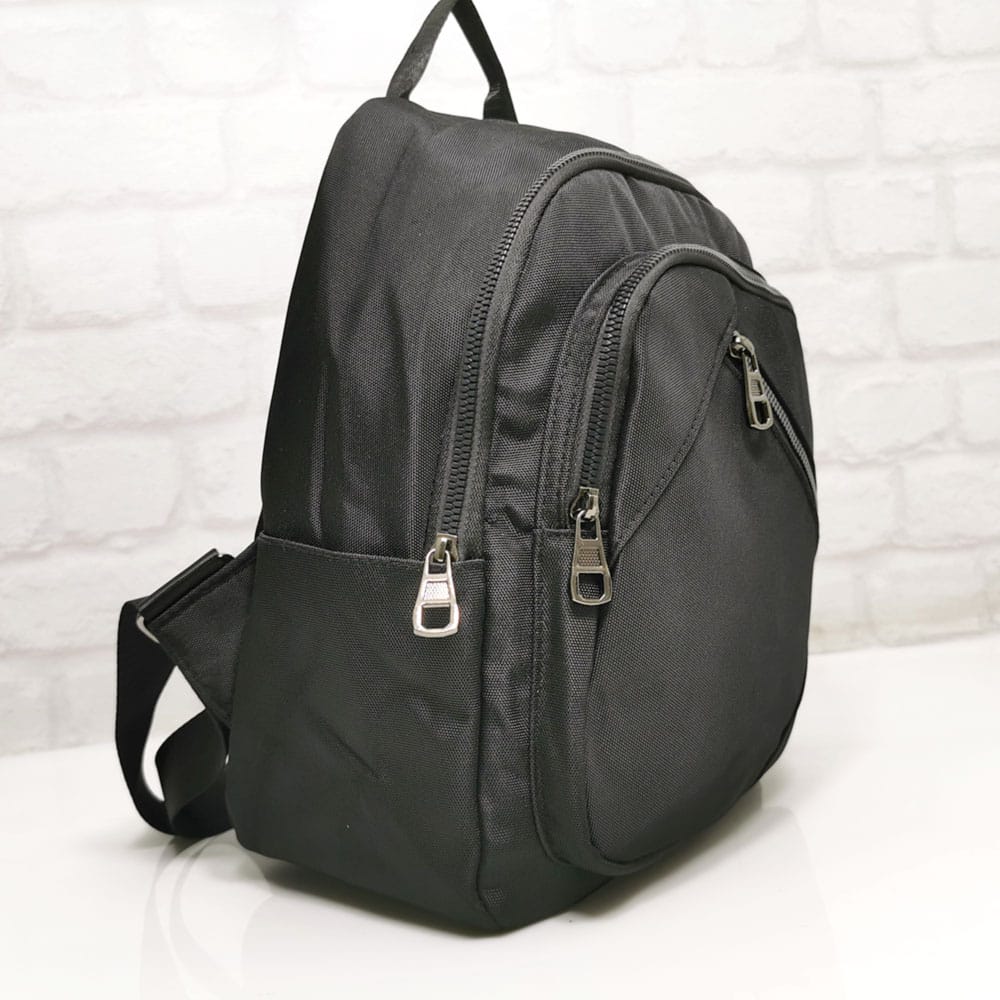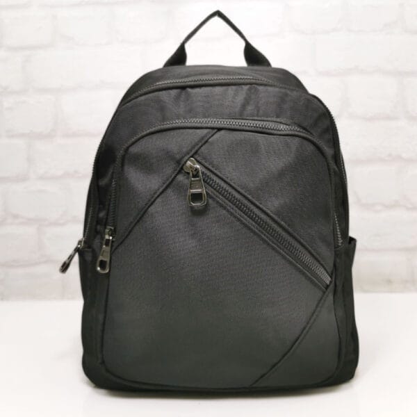 Отвън: отпред един голям джоб с метален цип, един малък диагонален джоб с цип, на гърба джоб с цип, от двете страни по един джоб без закопчаване.