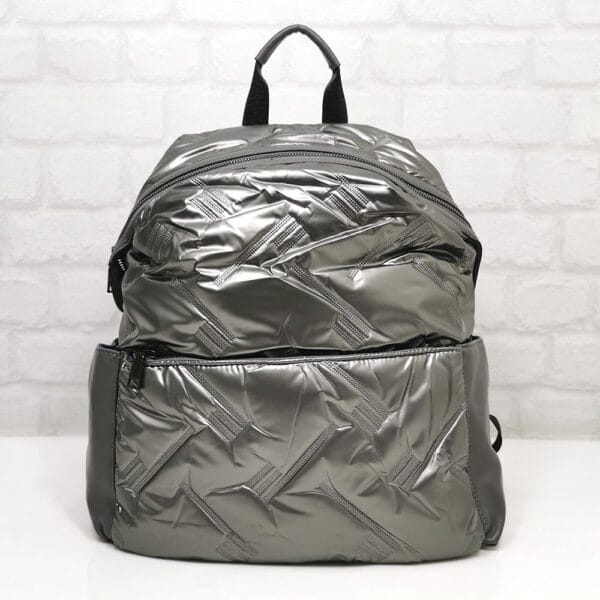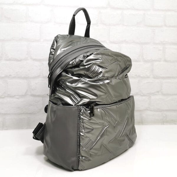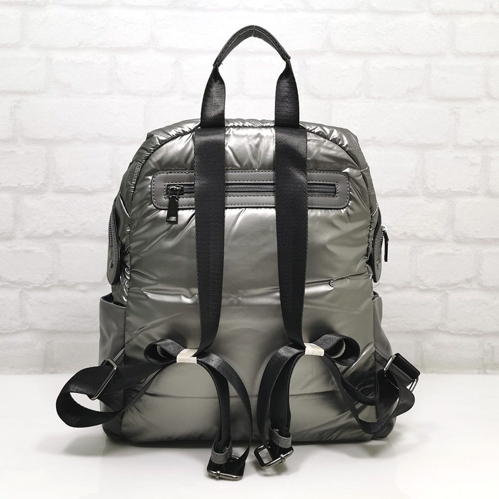Отвън: отпред голям джоб с метален цип, от двете страни по един джоб с магнитни копчета, отзад на гърба джоб с цип.