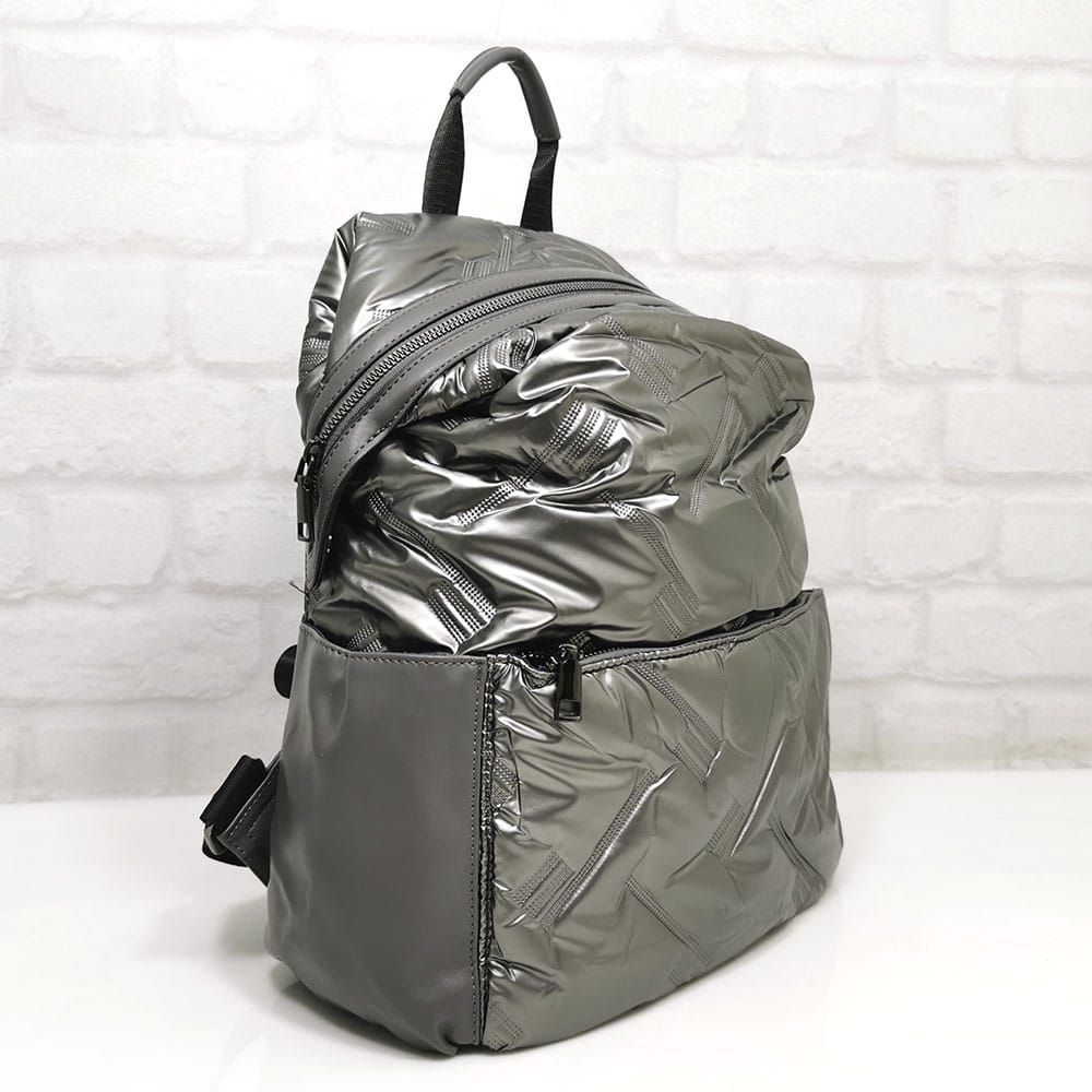 Сив с лъскав ефект, дръжки черни, обков сребрист-инокс.