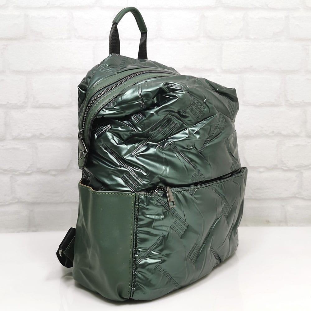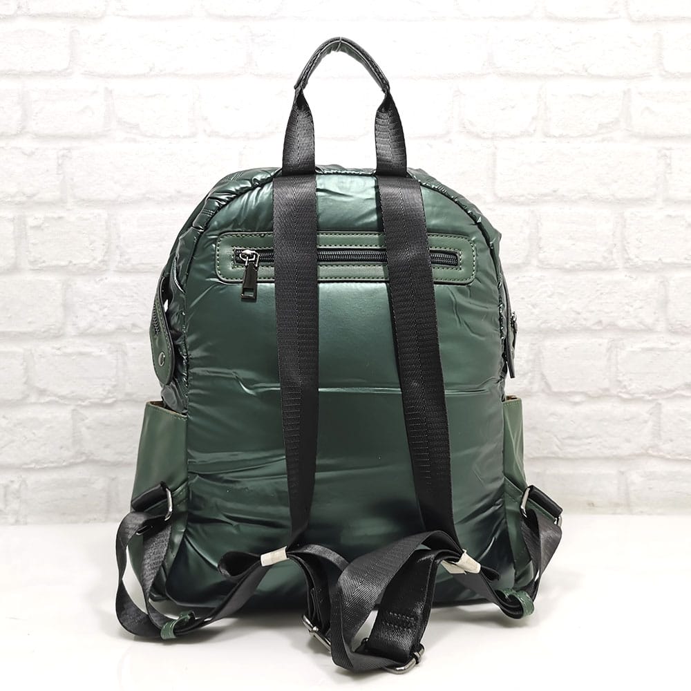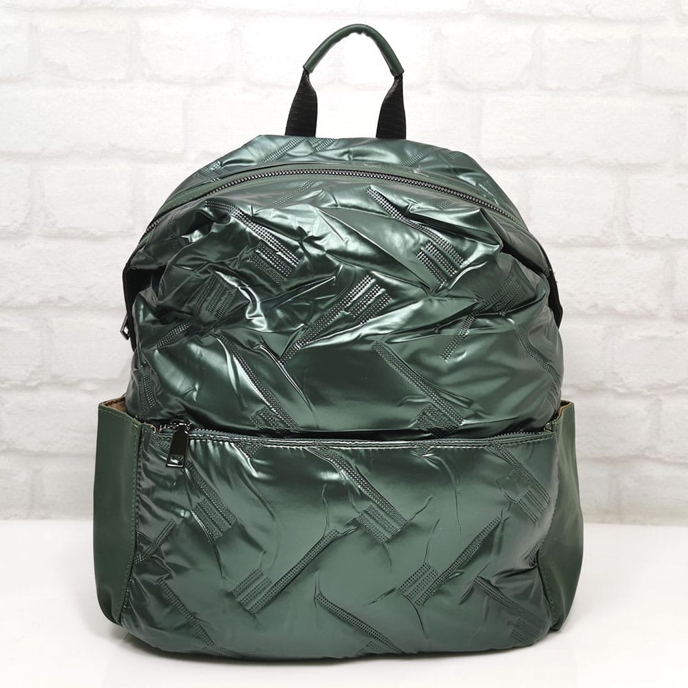 Отвън: отпред голям джоб с метален цип, от двете страни по един джоб с магнитни копчета, отзад на гърба джоб с цип.