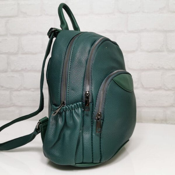 Две регулиращи се дръжки от еко кожа, подплатени с текстил за да не се разтягат, една къса дръжка. При издърпване на дългите дръжки по средата и на горе се получава една дръжка за носене на раницата на едно рамо, като чанта.