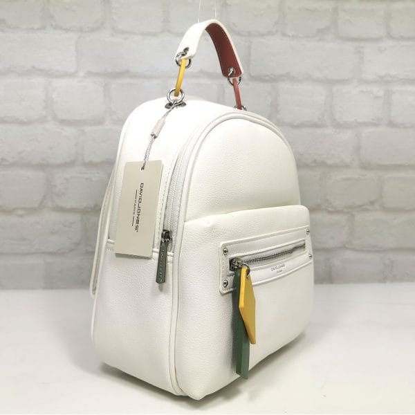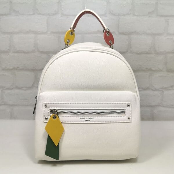 Бял с разноцветни акценти на дръжката и на предния джоб