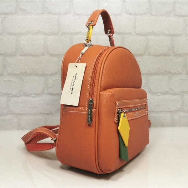 Оранжев с разноцветни акценти на дръжката и на предния джоб
