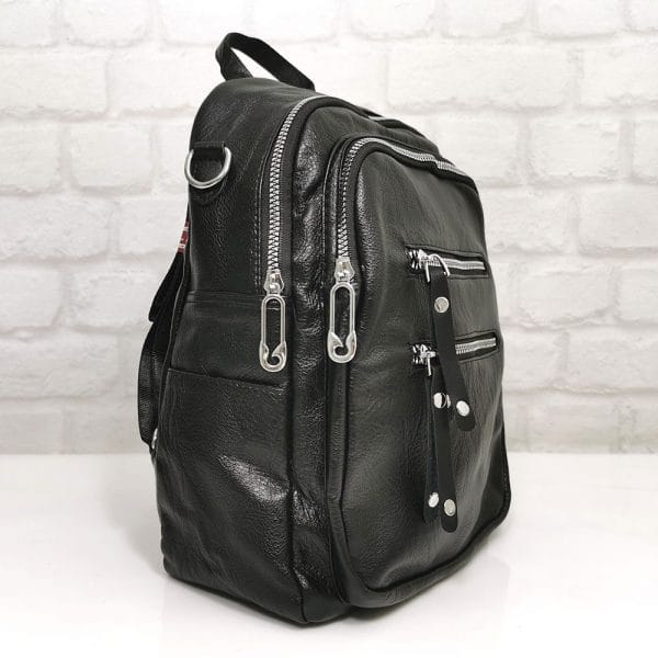 Отвън: Отпред два големи джоба и два малко джоба с метални ципове, отстрани по един джоб от двете страни, отзад на гърба вертикално джобче с цип и отвор за слушалки