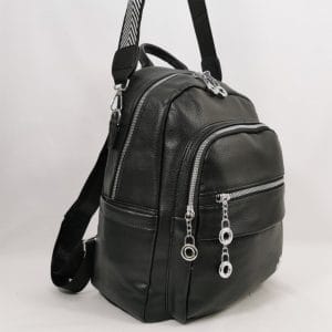 Отвън: отпред два джоба, единият с цип, другият с магнитно копче, отстрани по един джоб от двете страни с метален цип, отзад на гърба джобче с цип