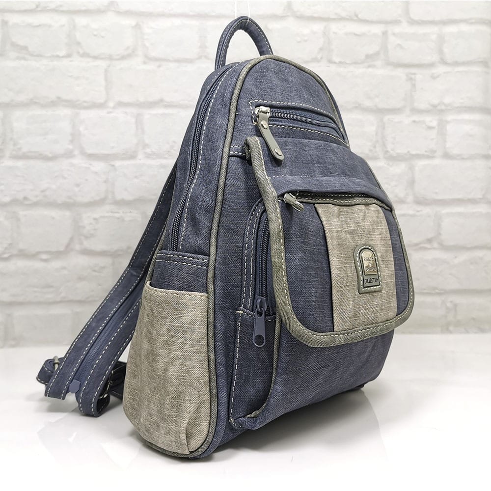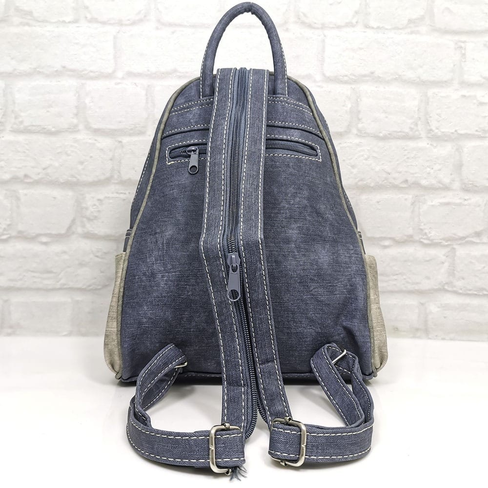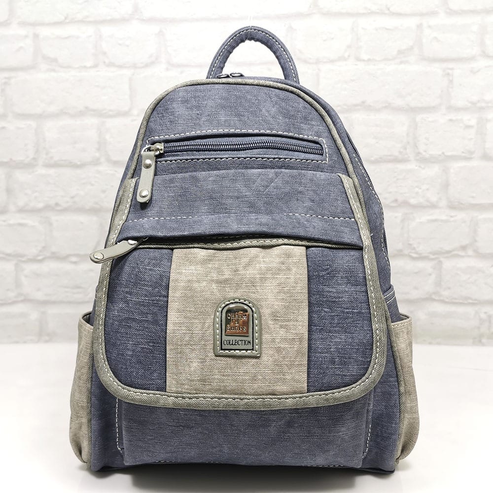 Отвън: отпред- малко джобче с цип, на капака джобче с цип, под капака джоб с цип, две странични джобчета