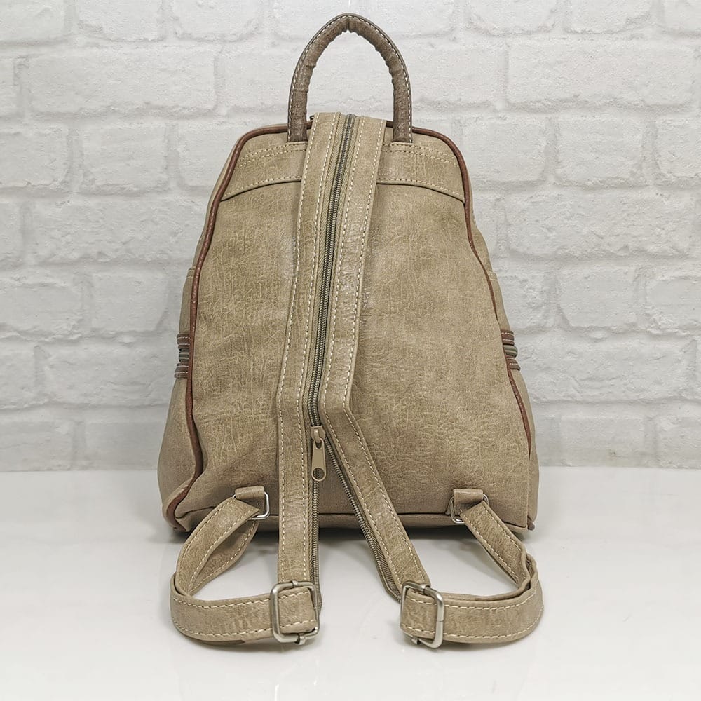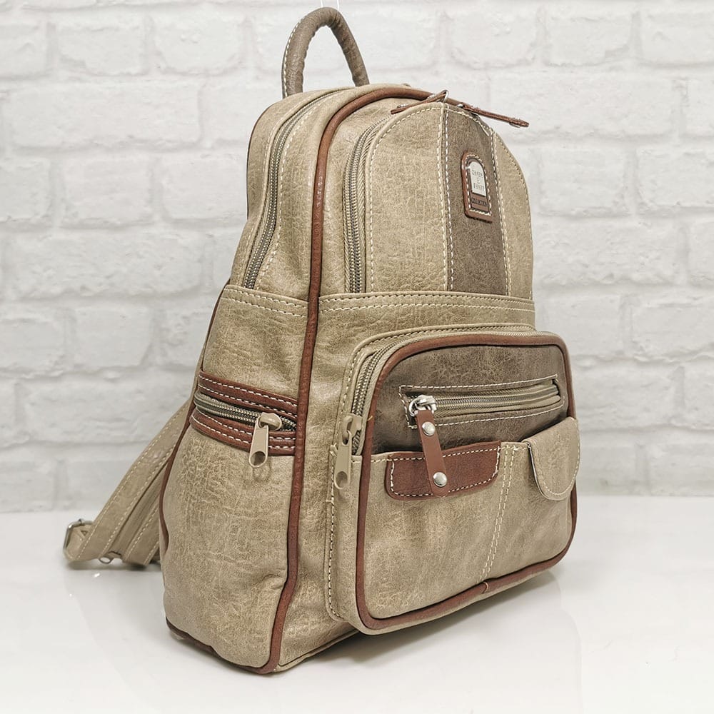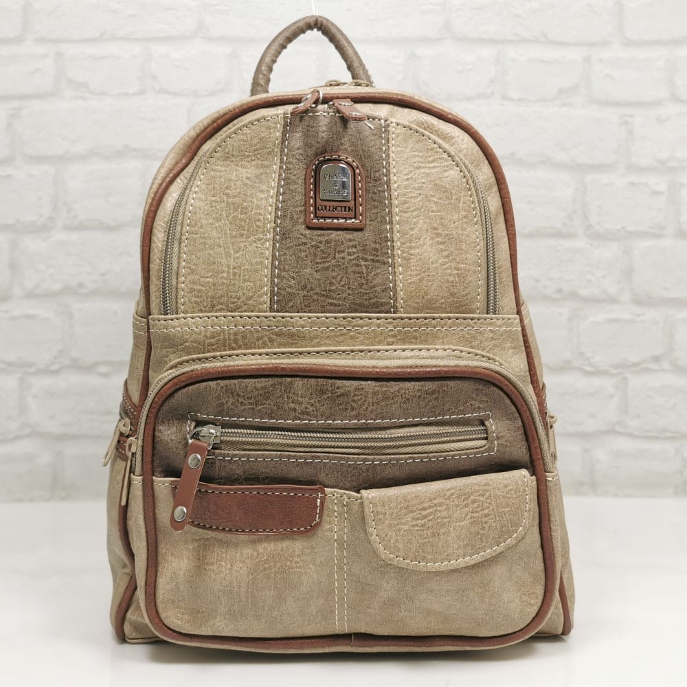 Отвън: отпред- три джоба с ципове, малко джобче с магнитно копче, малко джобче без закопчаване, две странични джобчета с ципове