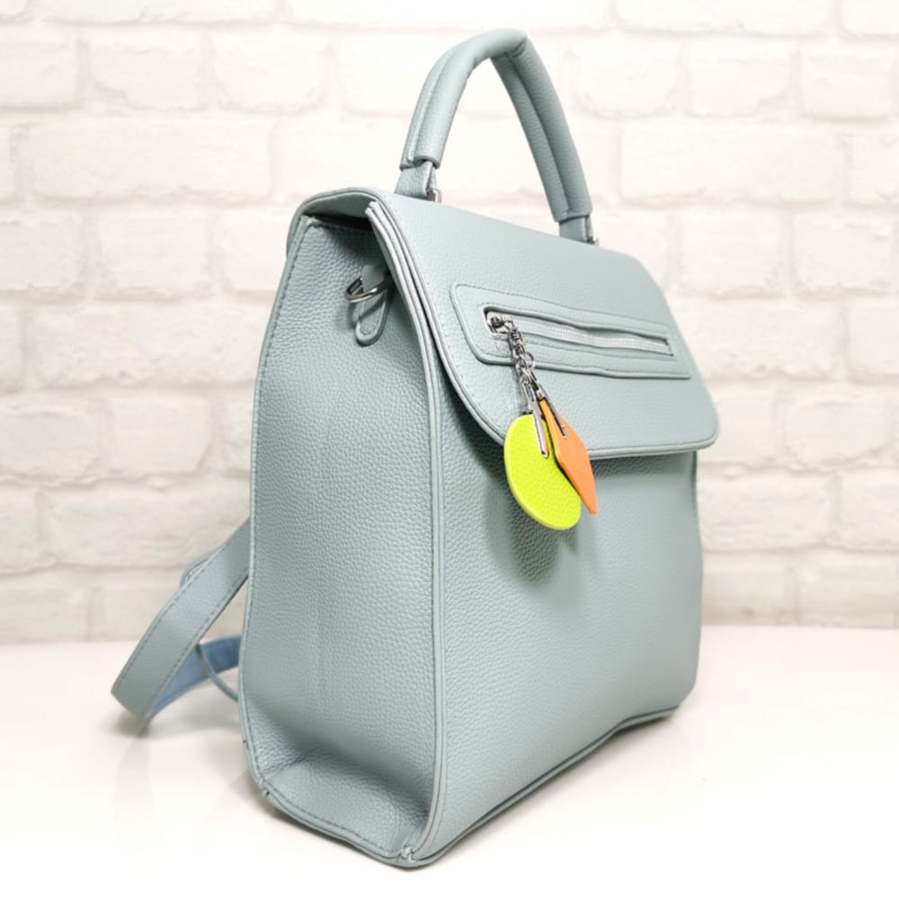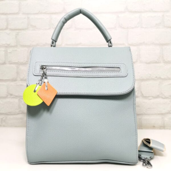 Стилна, практична и винаги актуална – тази нежно синя чанта-раница е създадена за забързаното ежедневие. С изчистен силует, удобна горна дръжка и забавни цветни висулки, тя добавя характер към всяка визия. Идеална за офиса, университета или разходка из града. Всички стоки са с преглед и тест! Безплатна доставка за заявки над 60.00 лева до офис на транспортна фирма!