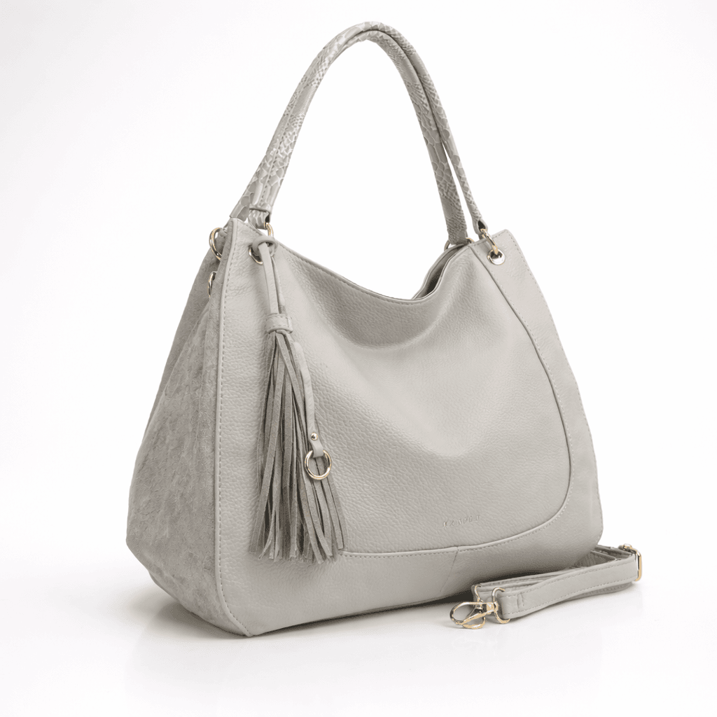 Две удобни за носене на рамо дръжки от еко кожа с принт и една подвижна регулираща се дръжка.