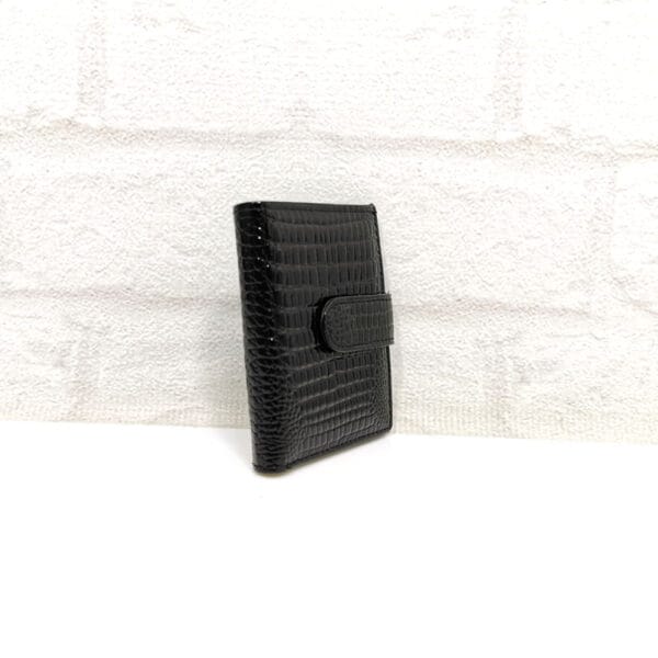 Има 10 прозрачни джоба за 20 броя визитки или карти, една преграда за банкноти, по една преграда от вътре на всяка от стените.
